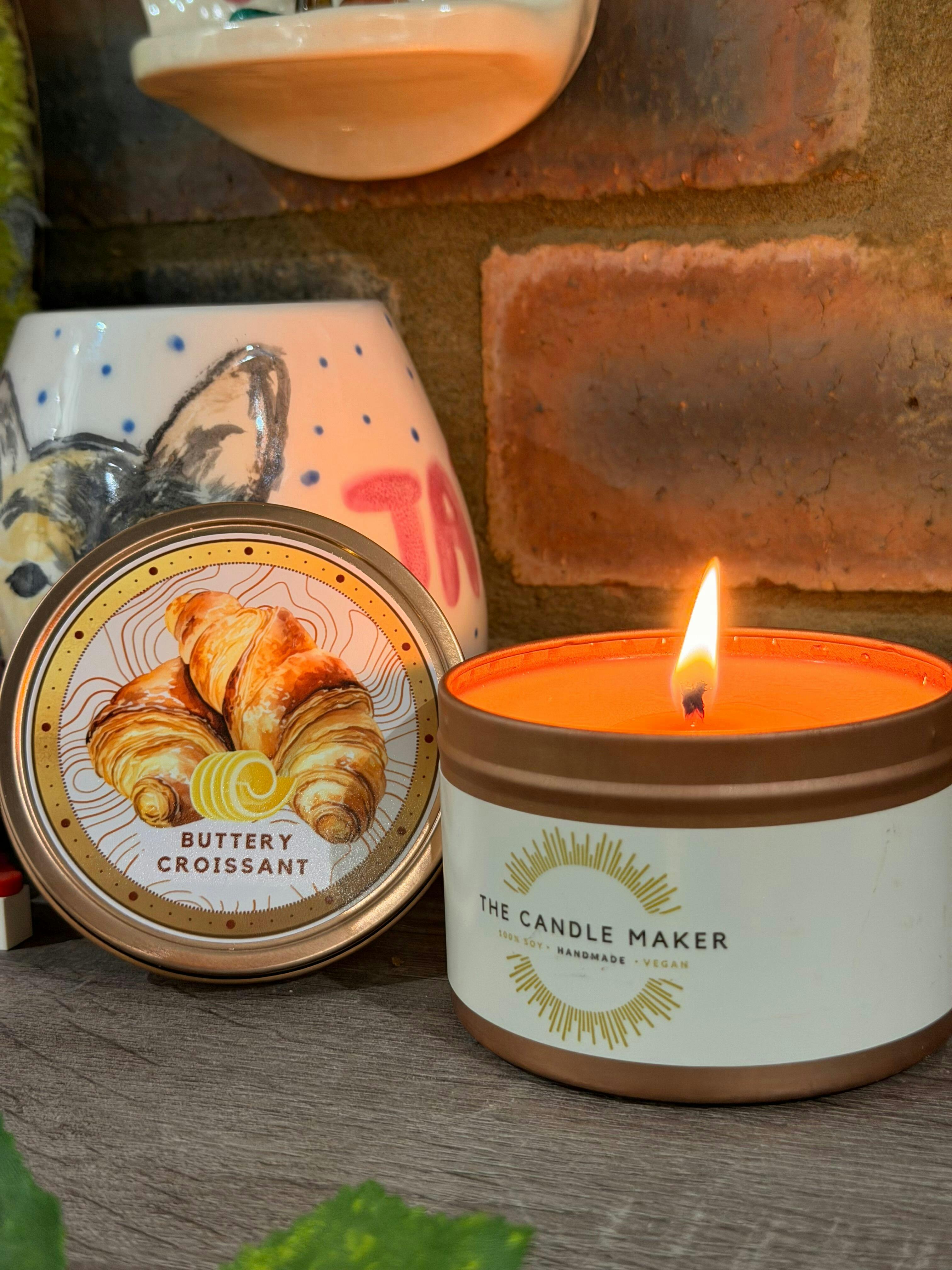 Escape to a Parisian cafe with our indulgent Croissant Candle. With every bite, a delicate crispness crumbles away to reveal layers of buttery allure. Experience the warmth and comfort of a freshly baked treat without leaving your home. With every inhale, the fragrant dance of butter and pastry will caress your senses hinting at the lusciousness within.